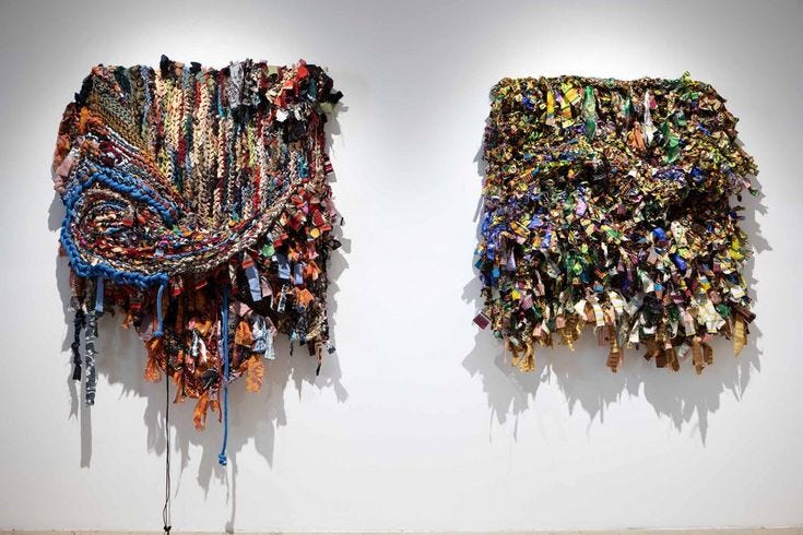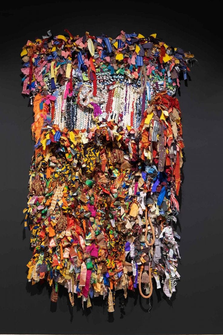 Ramekon O’Arwisters knows this choreography from the inside. He has spoken about choosing the most restrictive spaces when restriction already defined his life, and about the cost of being made acceptable. His rejoinder is simple and demanding: “My creativity has only asked me to be authentic, courageous, persistent.” Schism, his most recent exhibition at Patricia Sweetow’s Los Angeles gallery, is that rejoinder turned into matter. Bound sculptures bristle with repurposed implements and hardware—devices that render compliance visible—while quilt-like tapestries, stitched from bright fabric strips that honor his grandmother, hold a lineage of acceptance and care. Even there, history interrupts: drapery cords forming loops that recall nooses cut through the color. The point isn’t to choose between tenderness and coercion; it’s to see how they’ve been sutured together—and how the work begins to unpick the seam. Schism is not a purge; it’s an exorcism of what never belonged.