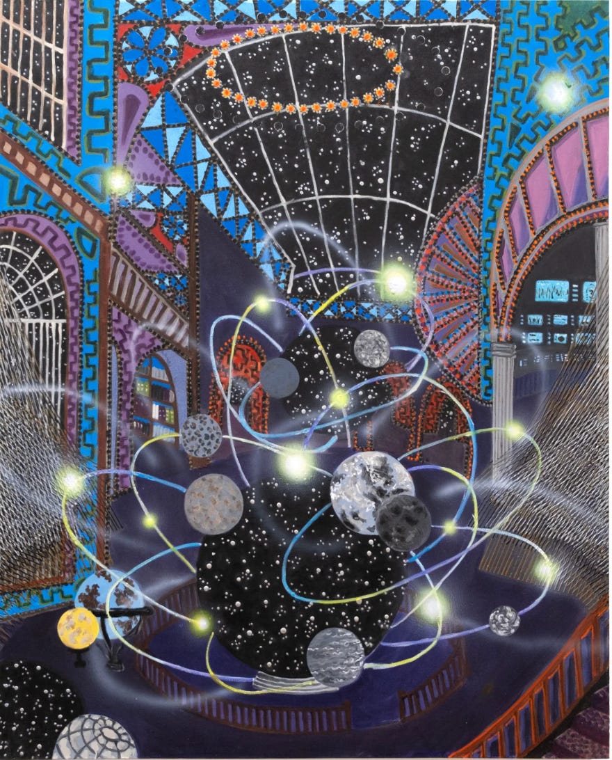 Description: Cosmic Codes features new paintings by Chicago-based artist Michiko Itatani, whose immersive, detail-rich canvases explore science fiction, cosmology, and cultural history. With a visual language that fuses Baroque architecture, star charts, and futuristic symbols, Itatani constructs imagined worlds that feel both ancient and intergalactic.