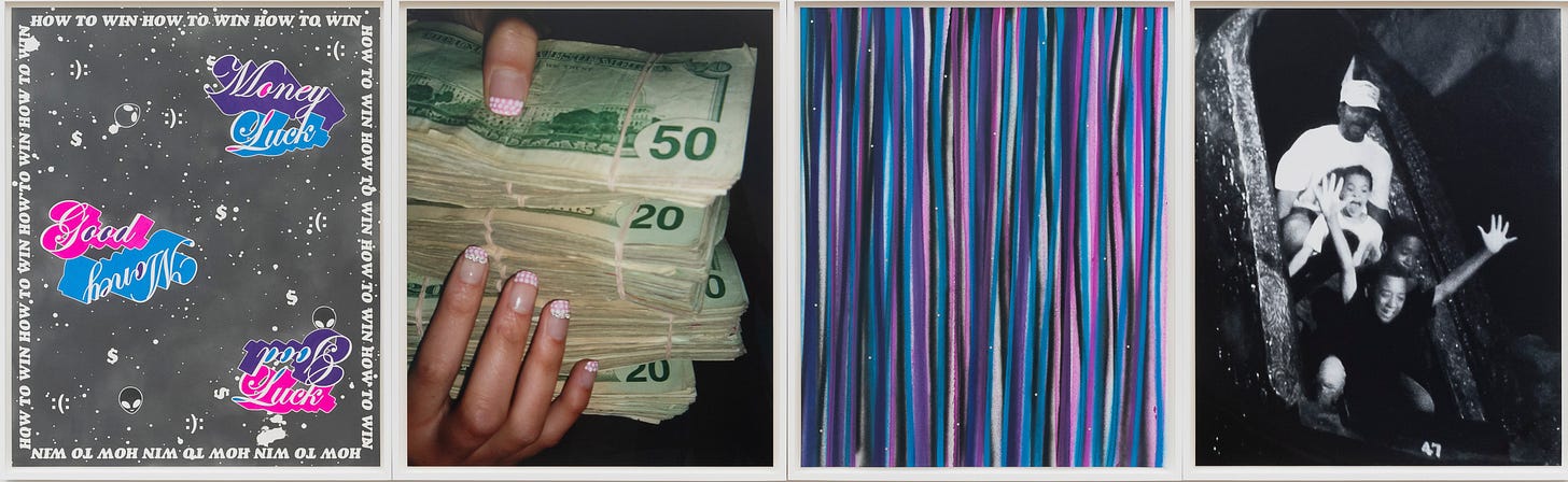Description: In this conceptually rigorous presentation, Barnette offers a poetic visual lexicon for navigating contemporary life. Featuring meticulously rendered drawings, candid photography, and text-based sculpture, the exhibition mines the tension between public and private, structure and improvisation, the mundane and the monumental. Barnette’s body of work is an investigation of language and legacy. Her “how-to” manuals—modular compositions that explore how we learn to exist within and in resistance to imposed systems—consider not only what it means to “act normal,” but who defines the metrics of success, and how those judgments are internalized. Presented as polyptychs that combine drawing and photography, these works create layered narratives that span the micro and the macro, the personal and the political. A large text-based wall sculpture fuses the words “winner” and “loser” into a single contranym, emphasizing the layered meanings in language and the arbitrary binaries that shape our lives.