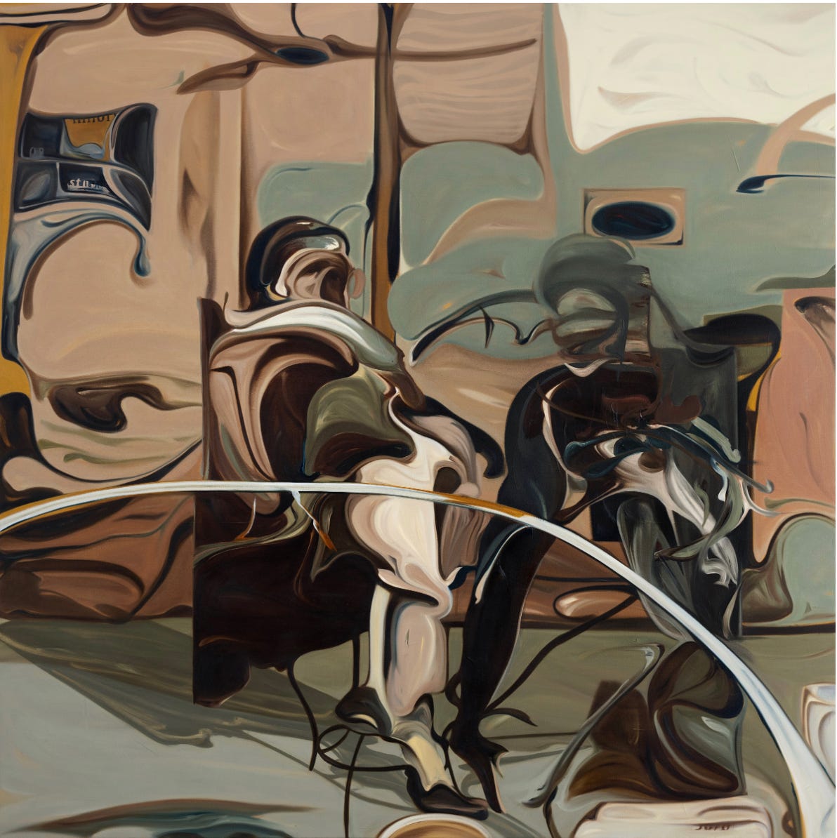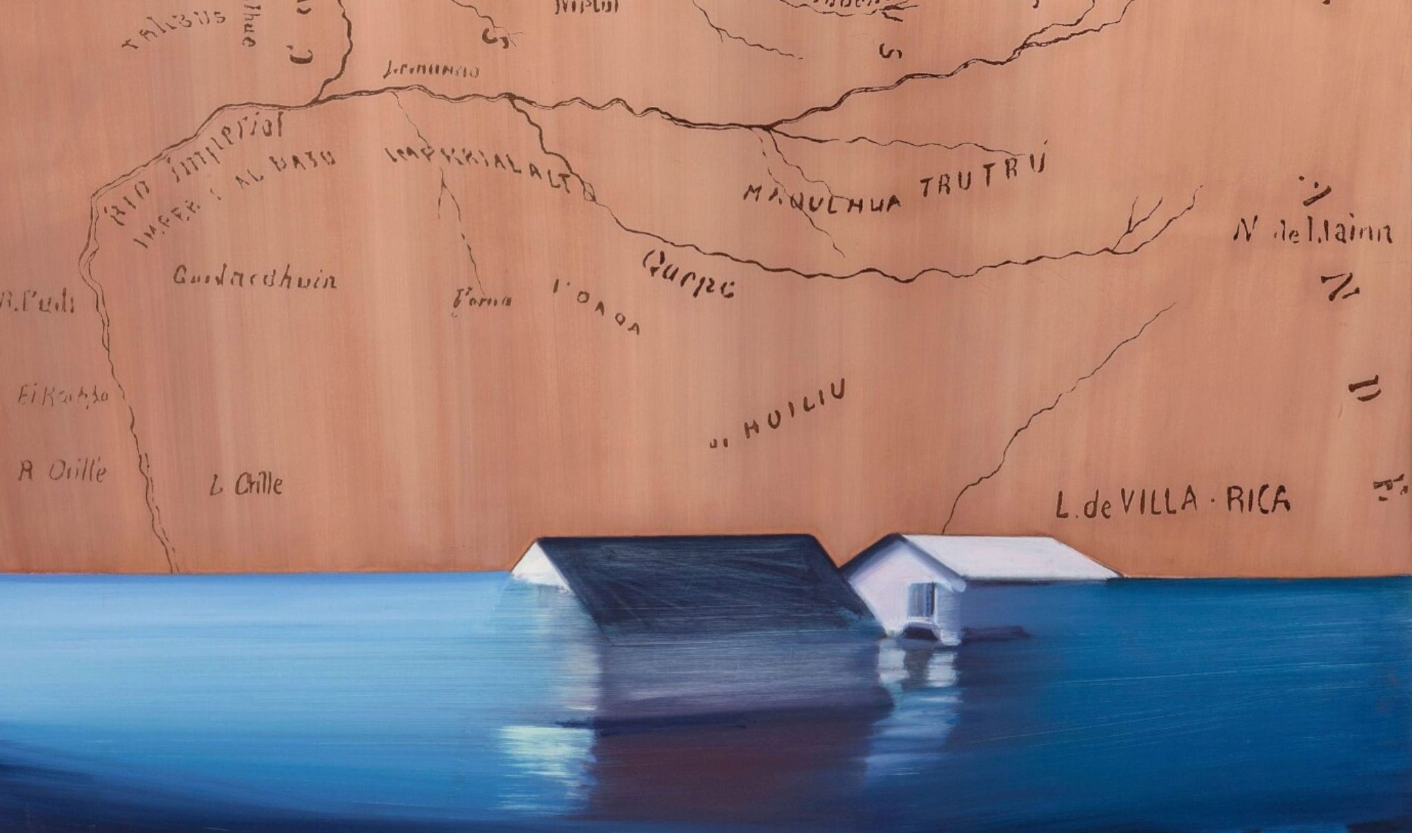Description: Pooley's dreamlike landscapes challenge fixed ideas of territory and nationhood. Her brushwork oscillates between precision and ambiguity, mirroring the instability of borders.